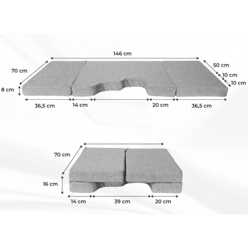 - Colchón de Alta Calidad: Fabricado con espuma fría de 7 cm de grosor (densidad 25 kg/m³) y un tablero MDF de 1 cm, ofrece soporte y comodidad.