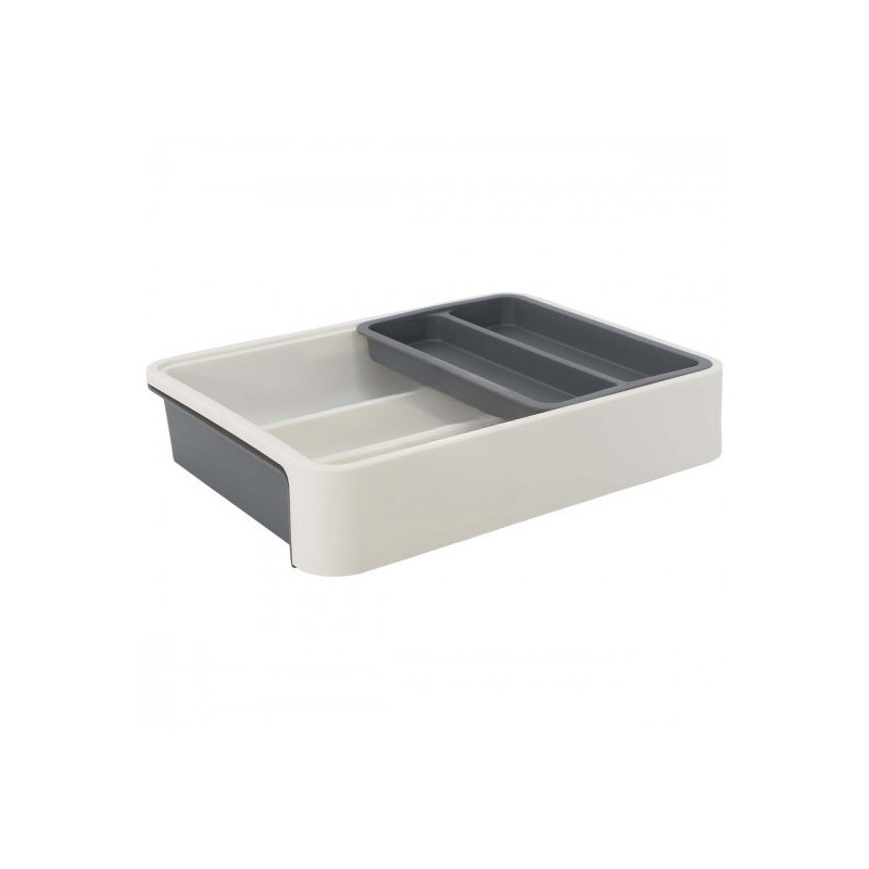 Optimiza el espacio en tu cocina, ya sea en casa, en tu autocaravana, caravana o tienda de campaña, con el cajón para cubiertos regulable de Gimex. Diseñado para mantener los cubiertos ordenados y al alcance, este práctico accesorio combina funcionalidad y diseño compacto.